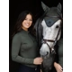 Luxurious crocheted ear bonnet in a stylish cold army green. Decorated with a gray satin patch on the front, beautiful black piping and an Equestrian Stockholm badge in black. The ear net provides both insect protection and noise reduction. It has elastic cloth on the ears for extra comfort.