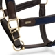The Mrs. Ros Brown & Navy Deluxe Leather Halter is anatomic and made of durable vegetable-tanned leather, a natural process that allows the leather to keep its shape for years to come.