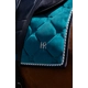 Our Velvet Deep Lake Saddle Pad features a diamond pattern with the Mrs. Ros logo embroidered throughout.