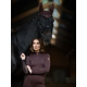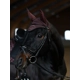 Luxurious crocheted ear bonnet in a stylish brown with a touch of red color. Decorated with a tone-on-tone satin patch on the front, beautiful black piping and an Equestrian Stockholm badge in purple brown. The ear net provides both insect protection and noise reduction. It has elastic cloth on the ears for extra comfort.