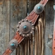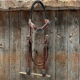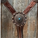 Browband and breastcollar in medium oil floral style. They are decorated with copper oval turquoise western conchos/buckles (W179) and brown fringe by the inch.