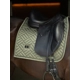 Elegant saddle pad with modern quilting in olive green with black and silver details. Decorated with the Equestrian Stockholm badge in black. The bamboo material is perfect all year round due to its thermal regulating effect – cooling in the summer and warming in the winter. It is also quick dry, moisture wicking, and anti-bacterial. Style with other pieces from the Striking Valley collection for a head-to-toe stylish look.
