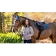 The textured pu leather girth protection area is complimented by an embossed logo and carries the usual signature LeMieux lower girth strap with its inner locking loops. The piece de resistance of the Loire Close Contact Square is its unique metal badge on a leather mount in the lower back corner.