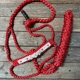 Everyone's favorite mule tape in red. It has a 10 ft. lead. Accented with leather rose noseband in assorted colors.