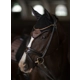 Luxurious crocheted ear bonnet in a stylish black color. Decorated with a mocha brown satin patch on the front, black edge border, and a black Equestrian Stockholm badge. The ear net provides both insect protection and noise reduction. It has elastic cloth on the ears for extra comfort. Matches perfectly with the saddle pad from the Modern Mocha collection.